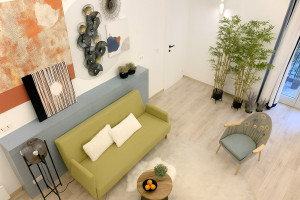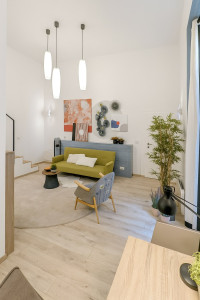 A 41 nm-es (plusz 8 nm galéria és 2 nm terasz) 1. emeleti lakás a belső udvarra néz, így rendkívül csendes, mégis néhány lépésre van a város lüktetésétől.